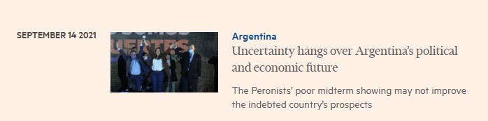 En una columna titulada “La incertidumbre se cierne sobre el futuro político y económico de Argentina”, la publicación señaló que aún “es demasiado pronto para celebrar. El mal resultado del partido peronista de izquierda de Alberto Fernández no anuncia necesariamente una mejor política económica o una victoria de la oposición en las presidenciales de 2023“.