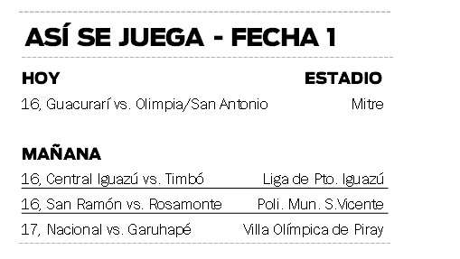 El puntapié inicial se dará en la Capital misionera, donde Guacurarí, el representante de la Liga Posadeña, enfrentará a Olimpia San Antonio, el clasificado por la Liga Regional Obereña.