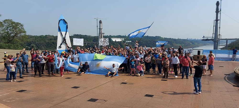 Vecinos de Puerto Iguazú volvieron a manifestarse este sábado por las calles de la ciudad y en el Hito Tres Fronteras pidiendo que se abra la frontera. Cabe recordar, que desde que se inició la pandemia provocada por el COVID-19, las fronteras de Argentina, con Brasil y Paraguay se cerraron. Esto provocó un impacto económico en los vecinos de Puerto Iguazú.
