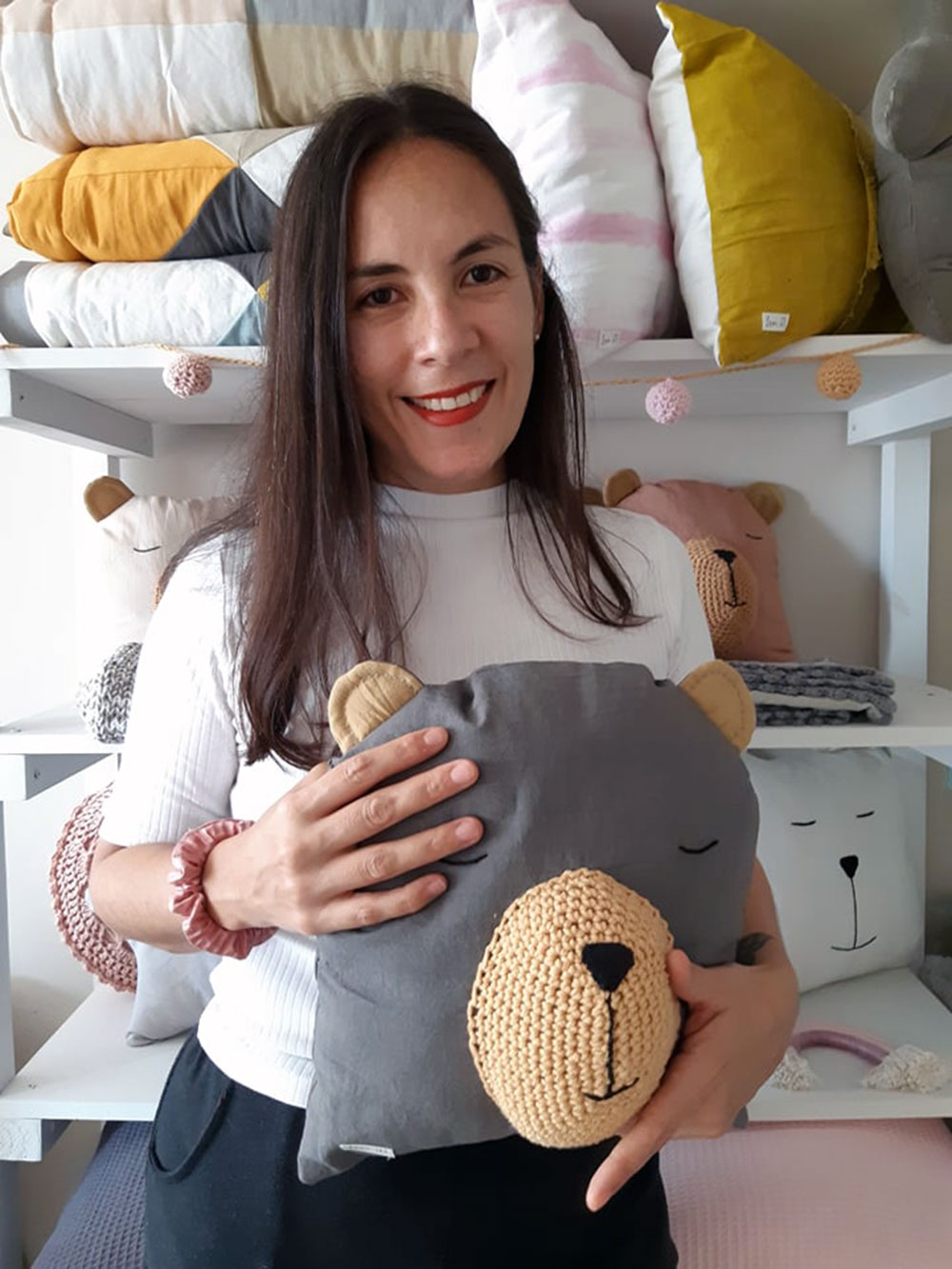 Nos cuenta que volvió de España hace unos siete años “debido al estado de salud de mi papá. Con mi emprendimiento Love it! empecé atendiendo trabajos a pedido, fundamentalmente de blanquería y decoración para bebés y niños, pero de a poco se fueron definiendo productos, mercado y clientela, siempre con la premisa de que mi trabajo me permita vivir una maternidad presente y desplegar mi creatividad”.