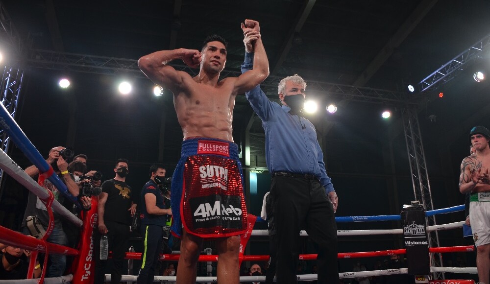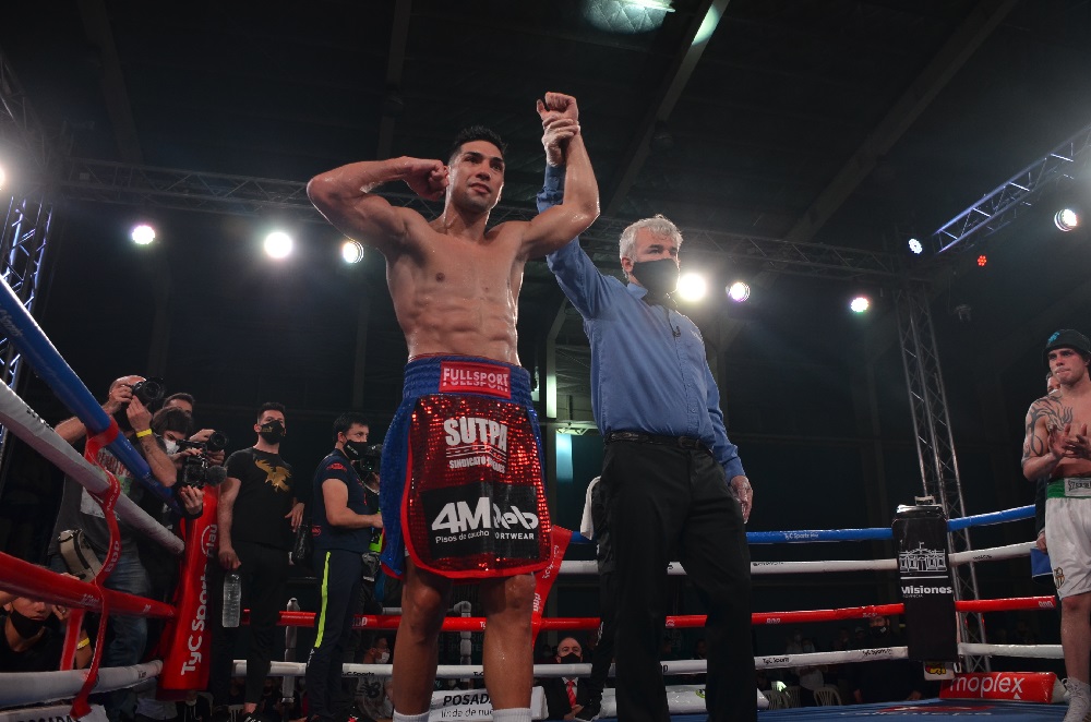 Unos 350 invitados especiales acompañaron el triunfo del misionero sobre el cordobés Maico Sommariva, que fue televisado a todo el país por TyC Sports. “El Cuervo” se impuso por nocaut en el cuarto round y desató las celebraciones en una noche muy especial: fue su primer combate en Misiones y, a la vez, el último en el país antes de partir hacia Estados Unidos, en busca de la gloria mundial.