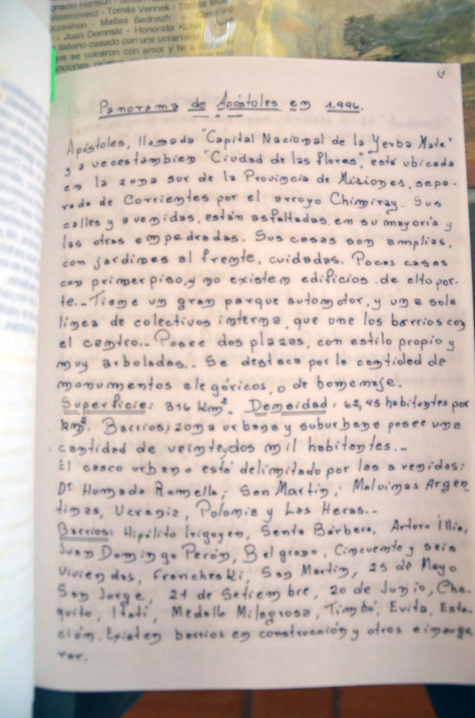 – Documento con la Descripción de la ciudad de Apósteles – Historiador Jorge Rendich, Municipalidad.