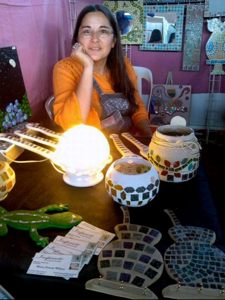 Mariel se sumó a todas las ferias, comenzando con Karyna González de Spacio Mujer, pero “ahora hago ya por pedido, mis hijas van al Janssen y me ayudan con las conexiones de las lámparas y trabajos de carpintería. Siempre trato de hacer varias cosas, aunque el mosaiquismo es lo que me encanta, me hace bien y me ayuda espiritualmente”.