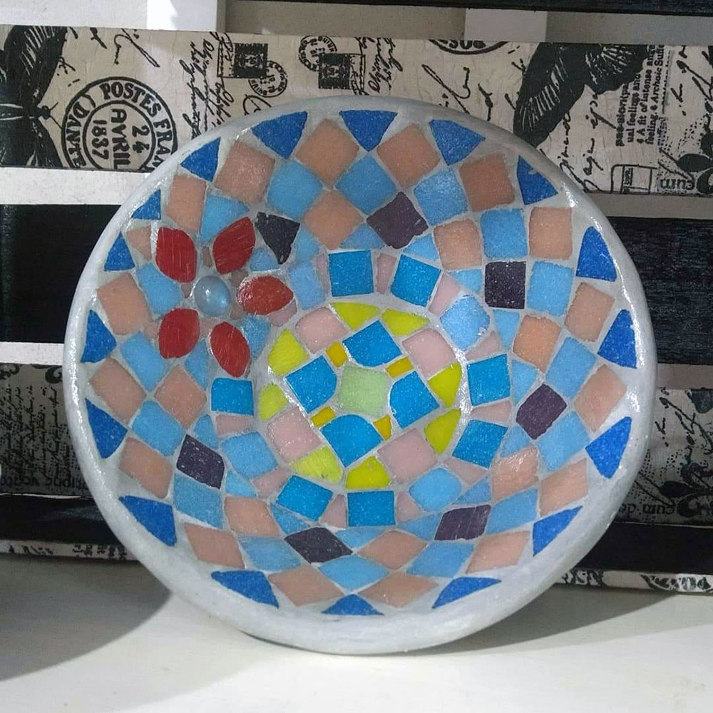 Fue en 2010 cuando “mi suegra me regala un curso de mosaiquismo, era nuevo en Misiones, ‘me voló la cabeza, me encantó’. Lo hice en Eldorado y no lo dejé nunca, pero como son piezas caras porque los materiales son costosos, hago otros trabajos con madera, ahora hago macetas de cemento, también incursioné con velas, aunque eso no es lo mío”, relata con entusiasmo y con mucha gracia dice: “en casa mosaiqueo todo lo que encuentro, también hago espejos, lámparas turcas con mosaicos de vitrofusión, aunque es un trabajo que cuesta”.