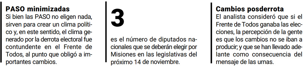 Aclaró que, desde su percepción, “muchos funcionarios, inclusive en Misiones, tendían a minimizar las PASO. Si bien no se eligió nada, se genera un clima político”.