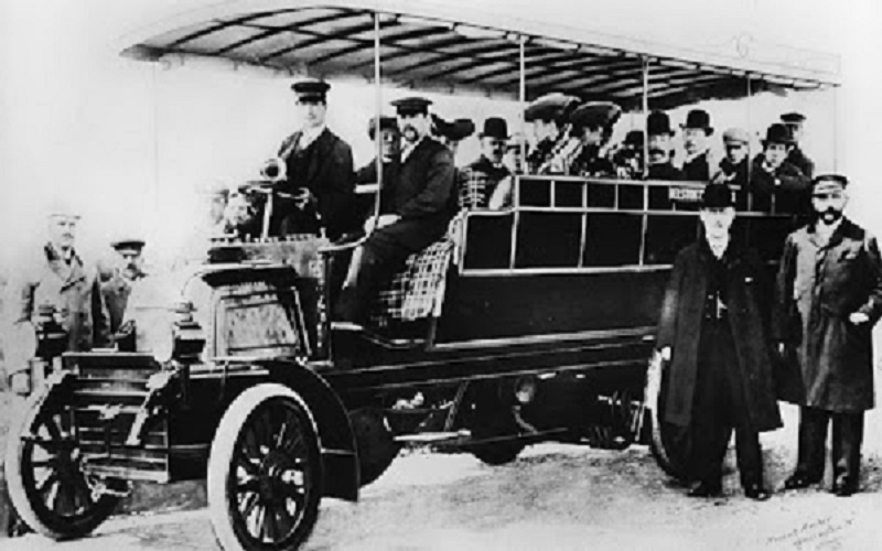 En 1898 Daimler desarrolló el primer colectivo con motor de combustión interna y diez caballos de potencia, que podía transportar hasta 16 pasajeros.