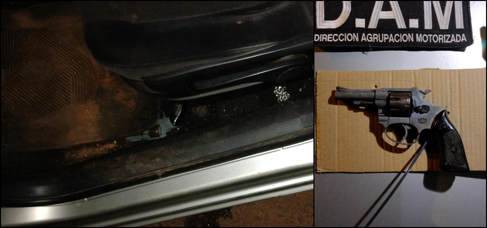 Tras la inspección del auto en cuestión, un Citroën C4, los efectivos lograron divisar un revólver calibre 22 largo con seis cartuchos en el tambor, que estaba semi oculto debajo de una alfombra del lado del conductor. El sospechoso no poseía documentaciones sobre la tenencia legal del arma ni del rodado.