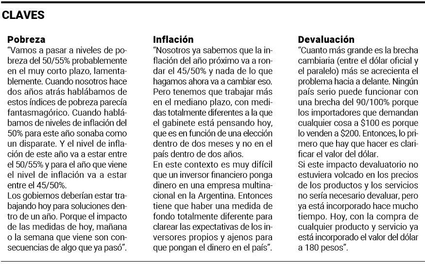 “Porque todo el mundo sabe que ese dólar de $102 en el mercado real vale 200 pesos. Eso es lo que hay que cortar”, sentenció el economista exvicepresidente del Citibank.