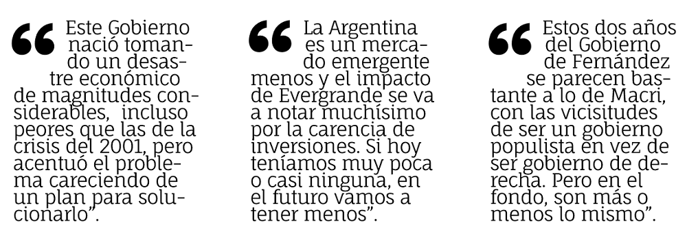 La Argentina es un mercado emergente menos, o sea que el impacto de Evergrande se va a notar muchísimo por la carencia de inversiones. Si hoy por hoy ya teníamos muy poca o casi ninguna inversión, en el futuro vamos a tener cada vez menos. Esto será así hasta que este tema se solucione o el mercado se tranquilice.