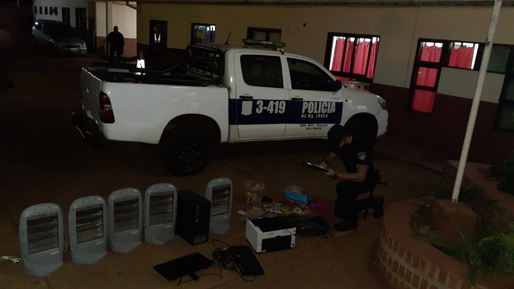 De inmediato integrantes de la seccional Tercera acudieron al lugar y hallaron cuatro estufas eléctricas, equipos de computación con impresoras y elementos de uso didáctico como ser libros, cuadernos y lápices, que posteriormente fueron incautados.