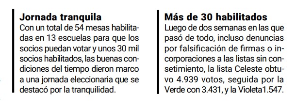 Datos provisorios. En una jornada tranquila, pero en una muy reñida elección, la lista Celeste se imponía este domingo en las elecciones de la CEEL.