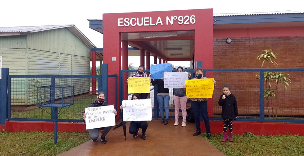 PROTESTAS. Los padres reclamaron mejoras en las escuelas de Oberá.
