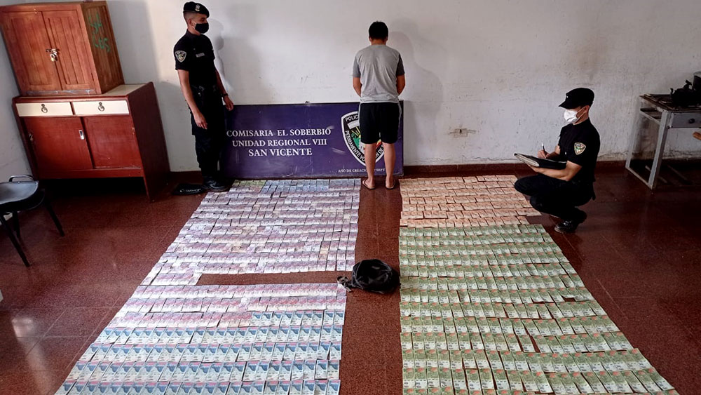 Tras la denuncia, el sospechoso fue aprehendido preventivamente en su vivienda del kilómetro 4. Minutos después, llegó a la comisaría un familiar. Relató que el joven le había solicitado que le guardara una mochila y al saber que él estaba detenido, revisó el interior y halló dinero. Al entender que podía ser mal habido, lo entregó al personal policial voluntariamente.
