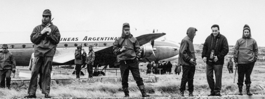 El avión de Aerolíneas Argentinas partió hacia Río Gallegos, pero a mitad del vuelo el comandante de la aeronave, Ernesto Fernández García, fue abordado por los militantes peronista, quienes le indicaron el cambio de destino. Al acercarse a las Islas Malvinas, el Douglas DC4 aterrizó en la misma pista de cuadreras que había sido escenario de la gesta de Fitzgerald dos años antes. La aeronave quedó atrapada en la turba, al final de la recta de 800 metros: el lugar se convirtió en el “Aeropuerto Antonio Rivero”, el gaucho que lideró un levantamiento contra los ingleses en 1833.