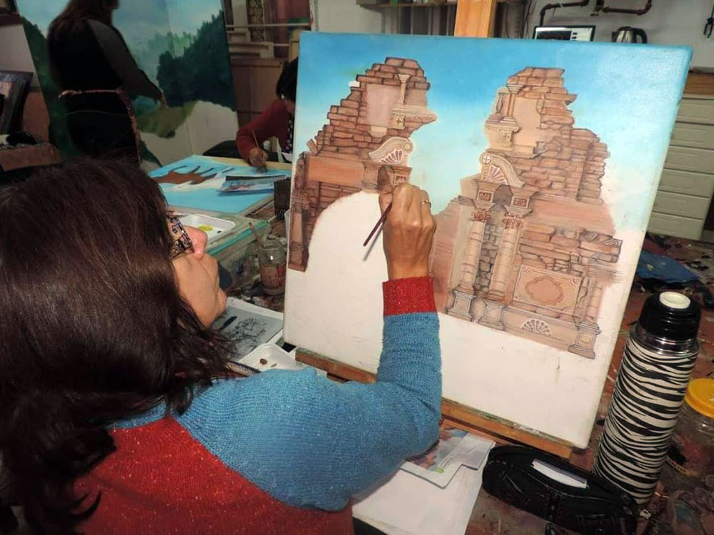 Trabaja incansablemente, en un sector que nada tiene que ver con el arte, sin embargo buscó completar ese vacío pintando, sin prisa pero sin pausa, disfruta de cada pequeña pincelada, compone sus propias obras desde distintas imágenes y al finalizar hay toda una historia plasmada en su lienzo.