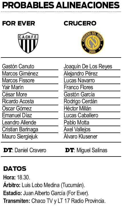 En la vereda de enfrente estará el siempre difícil For Ever, que viene de empatar sin goles con Unión en Sunchales y tiene como principal objetivo sacar provecho de su localía para saltar al tercer puesto, aprovechando que Central Norte tiene fecha libre.