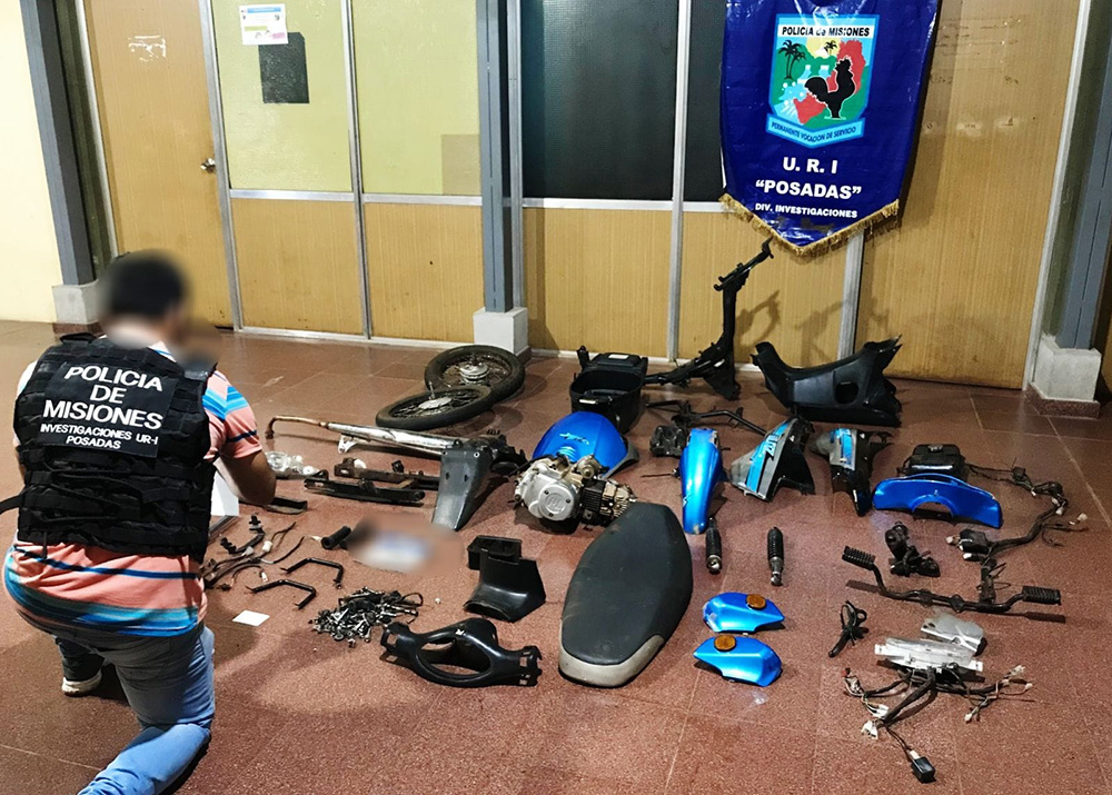 Por ello, con una orden de allanamiento brindada por el Juez de Instrucción N°2 de Posadas, requisaron el inmueble del joven que fue detenido, ubicado en el Barrio 508 Viviendas, donde secuestraron una de las motos robadas y partes de otros rodados.