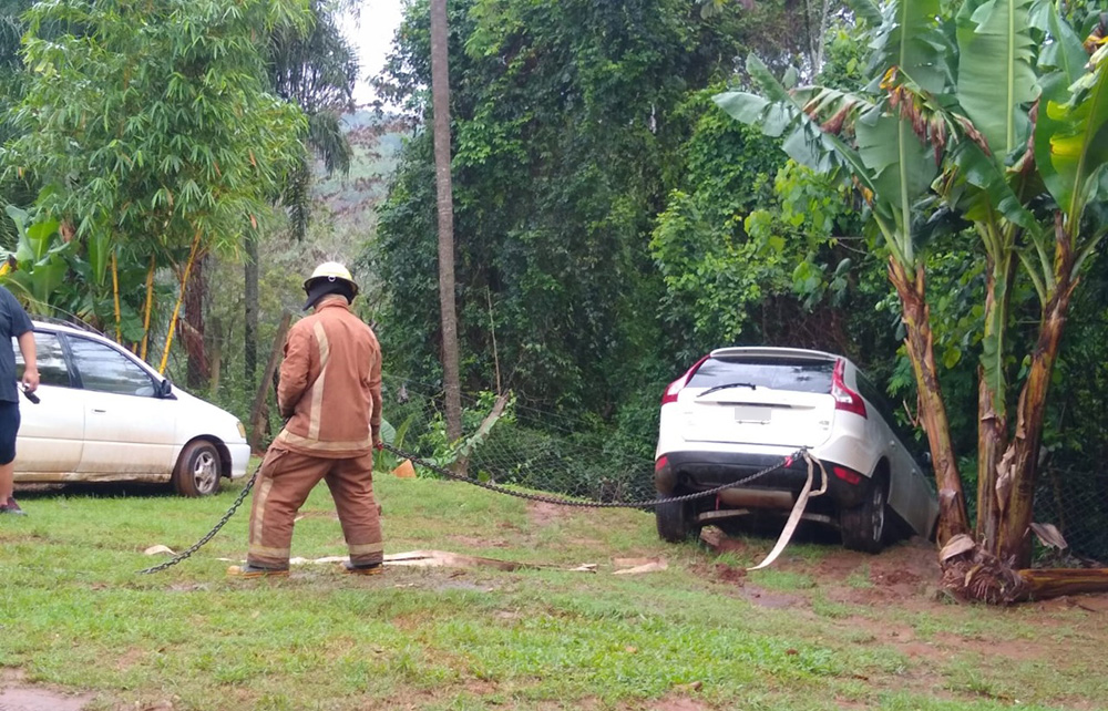 Cerca del mediodía de este sábado, una persona acudió a la guardia de Bomberos Voluntarios de Iguazú solicitando ayuda para poder sacar su automóvil, el cual estaba por caer a un barranco, en una arteria de la Avenida Tres Fronteras.