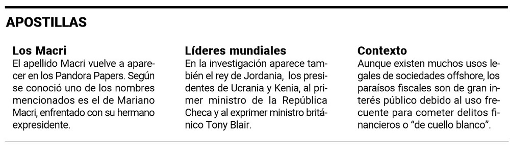 El capítulo argentino de los Pandora Papers incluye historias de interés público sobre figuras del kirchnerismo y del macrismo, de financistas vinculados a casos de corrupción y de grandes empresarios. Revelará datos comerciales, tributarios y societarios hasta ahora desconocidos sobre futbolistas de elite y celebrities locales.