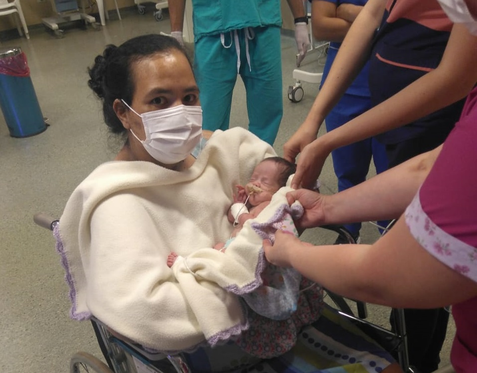 Después de 46 días en la Unidad de Terapia Intensiva Obstétrica (UTIO) del Hospital Materno Neonatal, Noelia conoció a Milagros, su hermosa beba que nació con siete meses, un parto prematuro a causa del COVID-19.