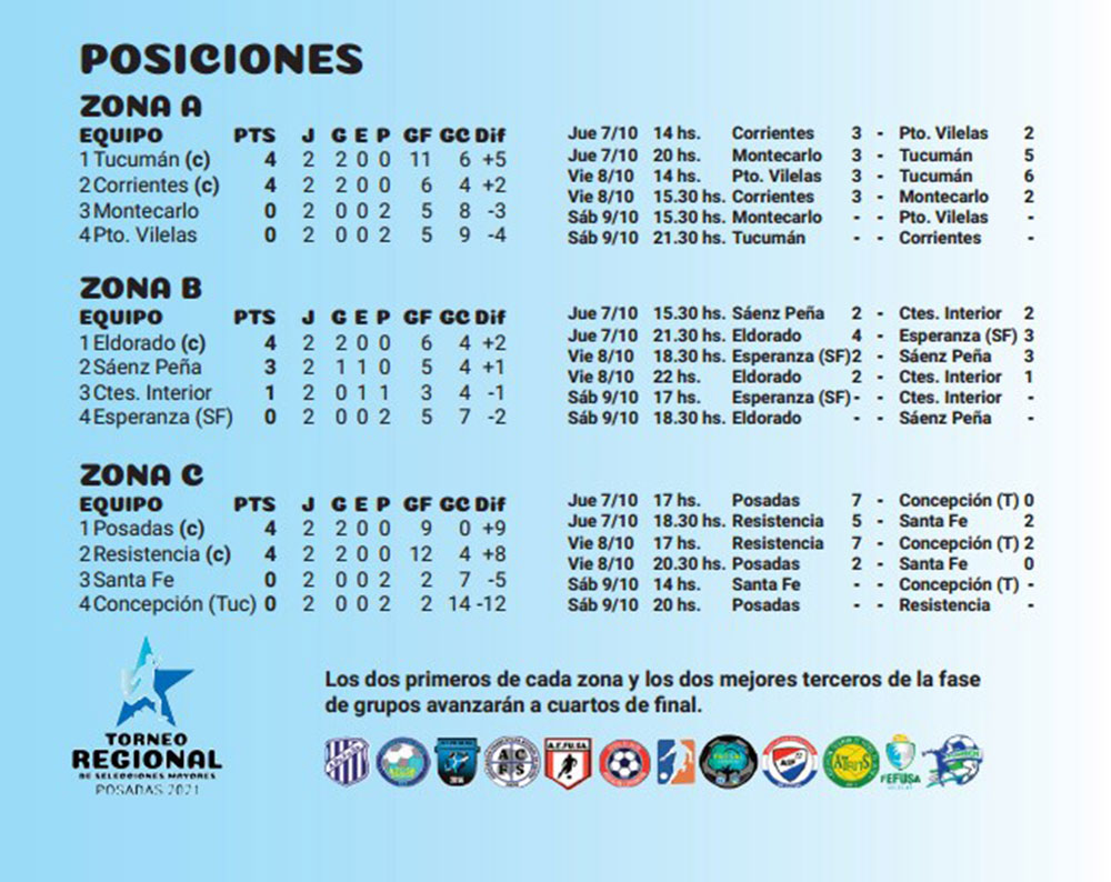 La Selección Posadeña aseguró la clasificación a los cuartos de final del Torneo Regional 2021 de Selecciones Mayores de Futsal, al vencer por 2-0 a Santa Fe, por la segunda fecha del grupo C. Este sábado, desde las 20, definirá la primera posición ante Resistencia.