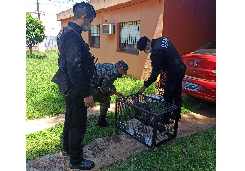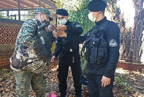 Una vecina se contactó con efectivos de la Policía de Misiones para alertar sobre la presencia del ave en el patio de su vivienda.