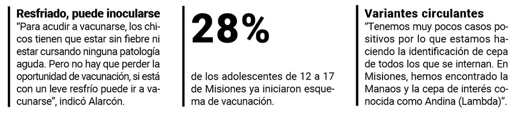 Según Alarcón, Misiones tiene un ritmo de vacunación a razón de unas 10.000 dosis diarias. Si aplicáramos 5.000 dosis diarias a niños y adolescentes, en 78 días deberíamos tener a toda la población de 3 a 17 años con la primera dosis contra el COVID-19.