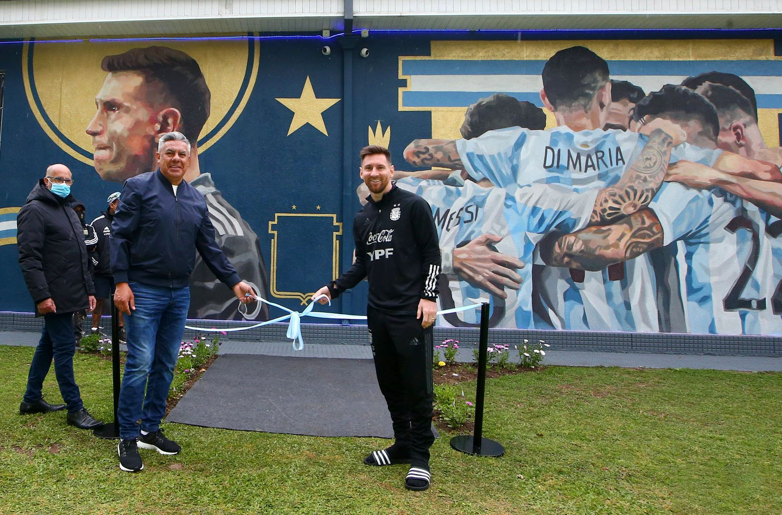 Messi y Tapia inauguraron de manera formal, con corte de cinta incluida, y también los jugadores del plantel dejaron su firma en la pared, a modo de representación.