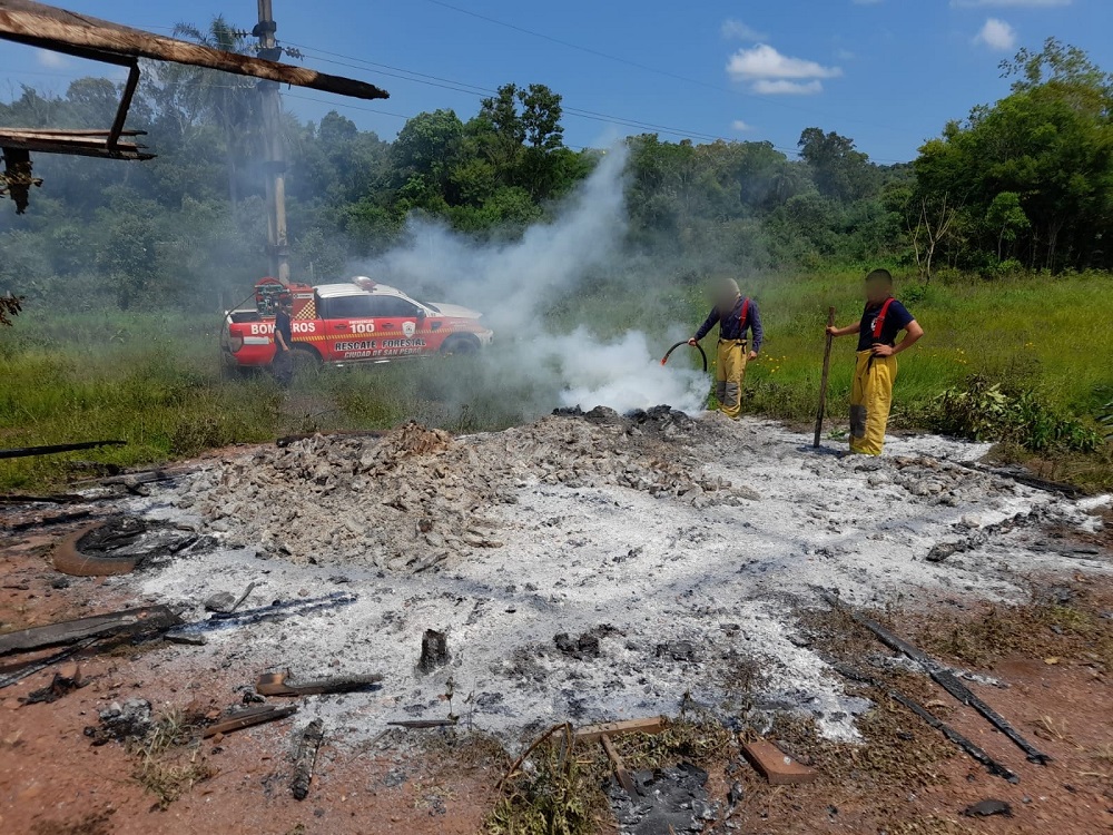 Un vecino de la zona se acercó a la dependencia policial e informó sobre las llamas en la casa de madrera. Ante esto, una patrulla se dirigió hasta el lugar, donde constató lo ocurrido y solicitó la colaboración de los bomberos voluntarios de Pozo Azul. Pero, los uniformados policiales notaron que entre las llamas diferentes bultos rectangulares.