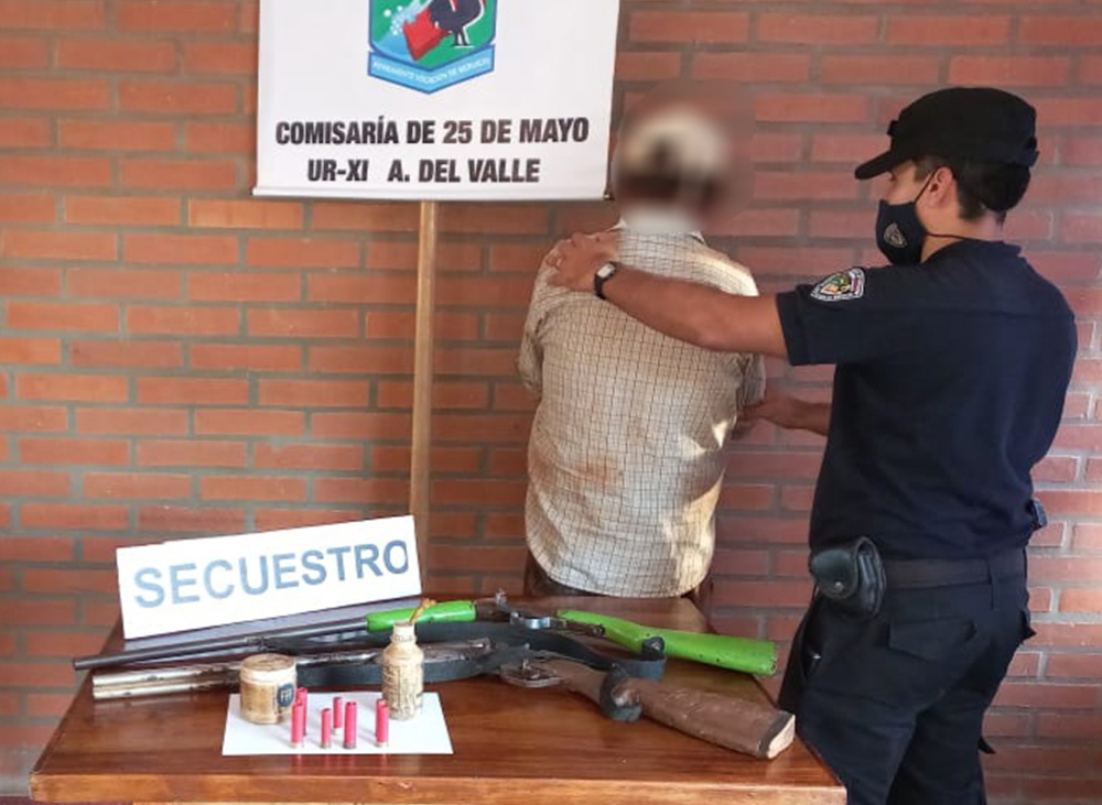 El hecho ocurrió ayer en horas de la tarde en el Paraje Camión Cué, donde los efectivos de la Comisaría y división Comando Radioeléctrico de 25 de Mayo, arrestaron a un hombre de 55 años e incautaron cartuchos de varios calibres y dos escopetas que presumiblemente las utilizó para amenazar a sus vecinos.