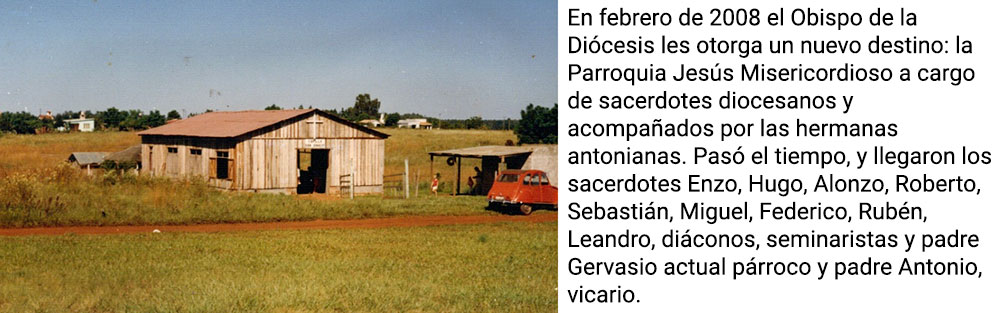 En febrero de 2008 el Obispo de la Diócesis les otorga un nuevo destino: la Parroquia Jesús Misericordioso a cargo de sacerdotes diocesanos y acompañados por las hermanas antonianas. El párroco Héctor Weller animó a la comunidad a seguir adelante y a vivir la fe en comunión con un gran corazón y un espíritu de entrega.