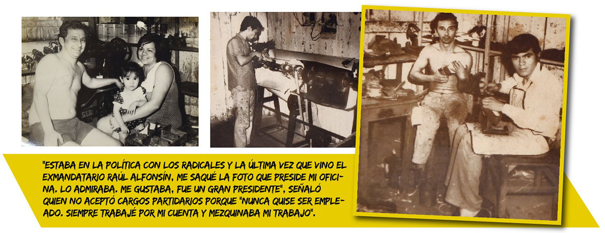 “Aprendí el oficio de un tío que tenía una pequeña fábrica y hacía composturas. Empecé a mirar, aprendí, mis padres me ayudaron un poquito y me compraron las principales herramientas para empezar. Sentía que no podía decir que era zapatero, entonces viajé a Buenos Aires. Fui a perfeccionarme. Trabajé en un par de fábricas, pero donde me destaqué fue en la de un italiano, para aprender”, comentó, mientras acomodaba su delantal de cuero, rojo.