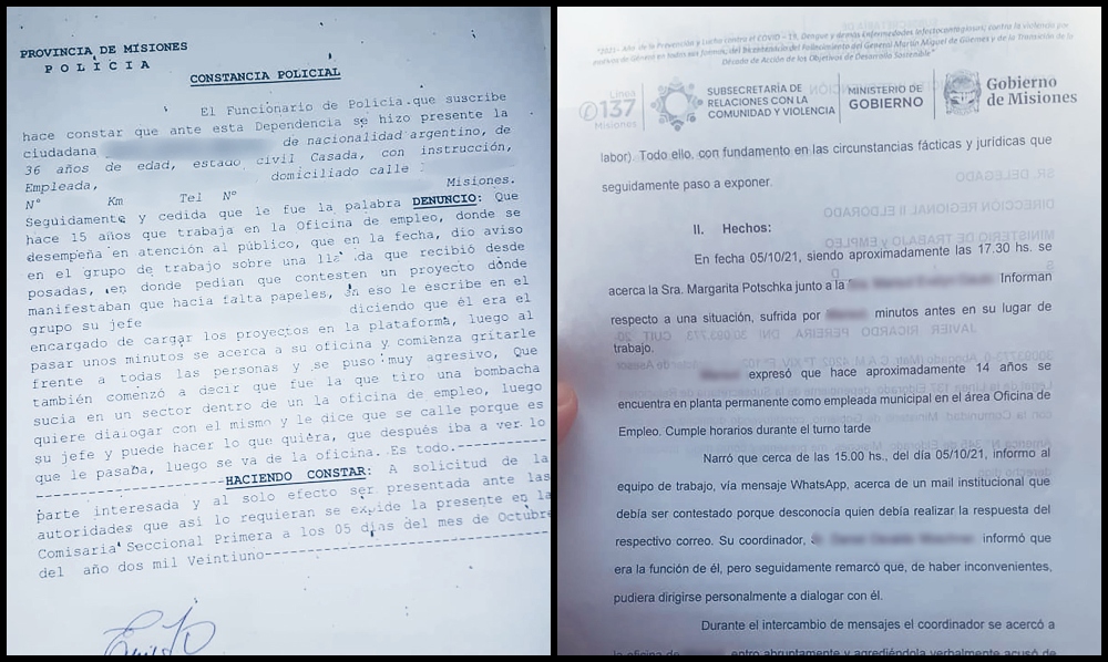 Siempre según el relato de la mujer, ese suceso fue el detonante para que el funcionario denunciado se presentara en la oficina, en momento en que estaban todas las integrantes del Misiones Trabaja y de Potenciar Trabajo, y comenzara a acusarla a los gritos.