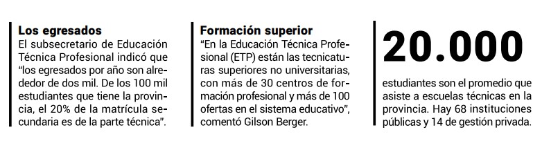 En cuanto a la demanda de matrícula, compartió que “en la EPET 1 todos los años se inscriben unos 300 alumnos y no incorpora más porque no tiene lugar, lo mismo sucede con la EPET 2 y las más grandes. Todas las instituciones de la provincia tienen una alta demanda por parte de los padres y hay un perfil en cada institución, que se construye con el tiempo. En cambio, las instituciones nuevas creadas en 2015 recién van por su primera cohorte de egresados”.