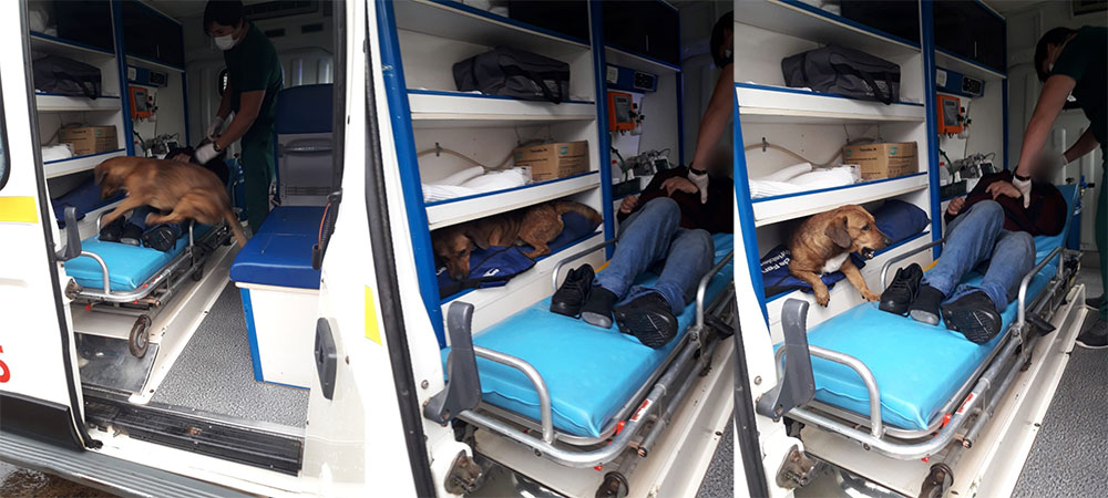 Junto al hombre estaba su mascota. El perro no se separó de su humano en ningún momento, tanto que cuando los enfermeros subieron l hombre a la ambulancia, su pequeño amigo no dudó, saltó dentro y lo acompañó hasta el hospital Madariaga.