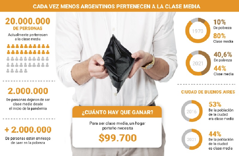 Con un nivel de pobreza que afecta al 40,6% de la población argentina, según el INDEC, se achicó mucho el margen para integrar la clase media.
