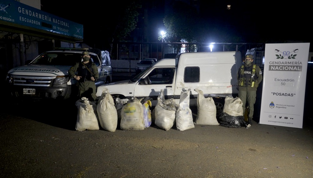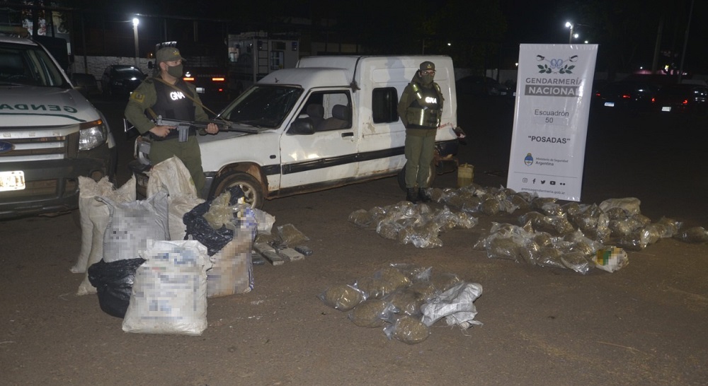 Este martes efectivos de Gendarmería Nacional pertenecientes al Escuadrón 50 “Posadas” incautaron de la parte trasera de un vehículo en la capital provincial seis bultos que contenían 85 paquetes con marihuana prensada y siete bolsas con cogollos de la misma sustancia vegetal, lo cual arrojó un peso total de 155,057 kilos.