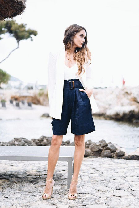 Si por el contrario, buscamos impactar con un look de coctail, la bermuda con un corte más ceñido, acompañada de stilettos, sandalias de taco fino o intermedio, y combinadas con un top brillante, saco sastre o blusa de seda, es una opción que no falla. Ideal para aquellas que buscan una alternativa para reemplazar el vestido de coctel o las faldas.