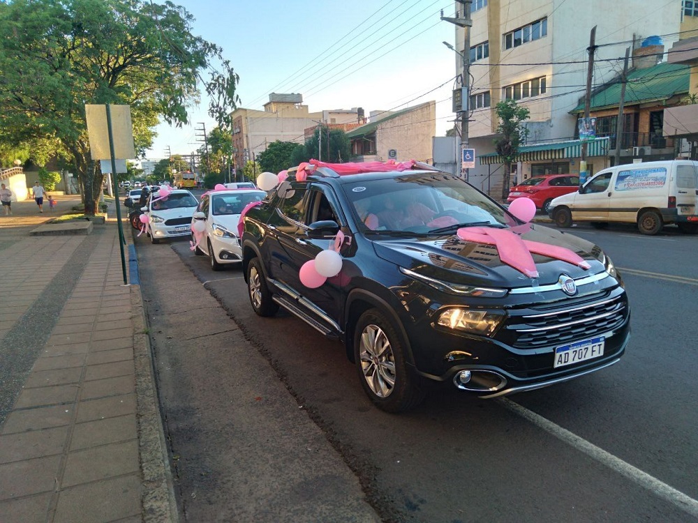 Con un recorrido que partió de la sede capitalina “largamos esta pequeña caravana para hacer un poco de ruido sano. Esto además sirve por si preguntan por los autos y el color rosa, es bueno que sepan que salimos a las calles para llevar un mensaje de concientización y prevención del cáncer”, añadió.