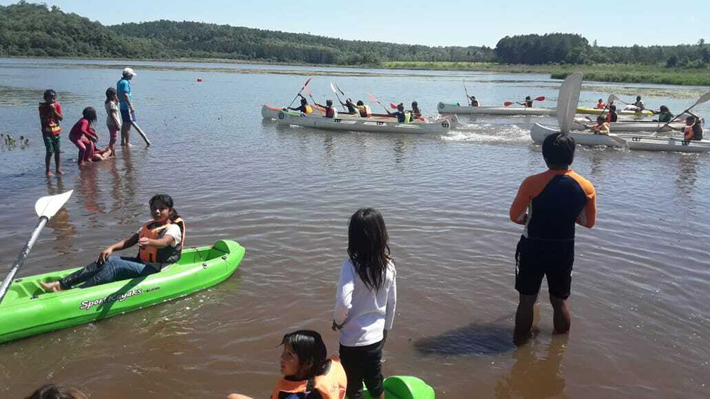 Bajo organización del Club San Ignacio Kayak y de la Escuela Ancestral de Navegación Marangatú, alrededor de 70 integrantes de las aldeas Tavá Mirí y Kokuere-í dieron el puntapié inicial en la mañana del domingo, para protagonizar un programa que se extendió hasta la tarde y que incluyó actividades competitivas en el río Paraná, pero también demostraciones musicales y otras actividades culturales y recreativas.