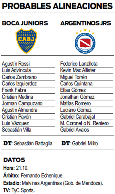 En cuanto a Argentinos, Gabriel Milito preservó en el partido del viernes ante Lanús al mediocampista Gabriel Carabajal para que pueda estar ante Boca debido a que arrastra algunos problemas físicos, y contará con un referente como Miguel Torrén, quien se recuperó de una lesión.