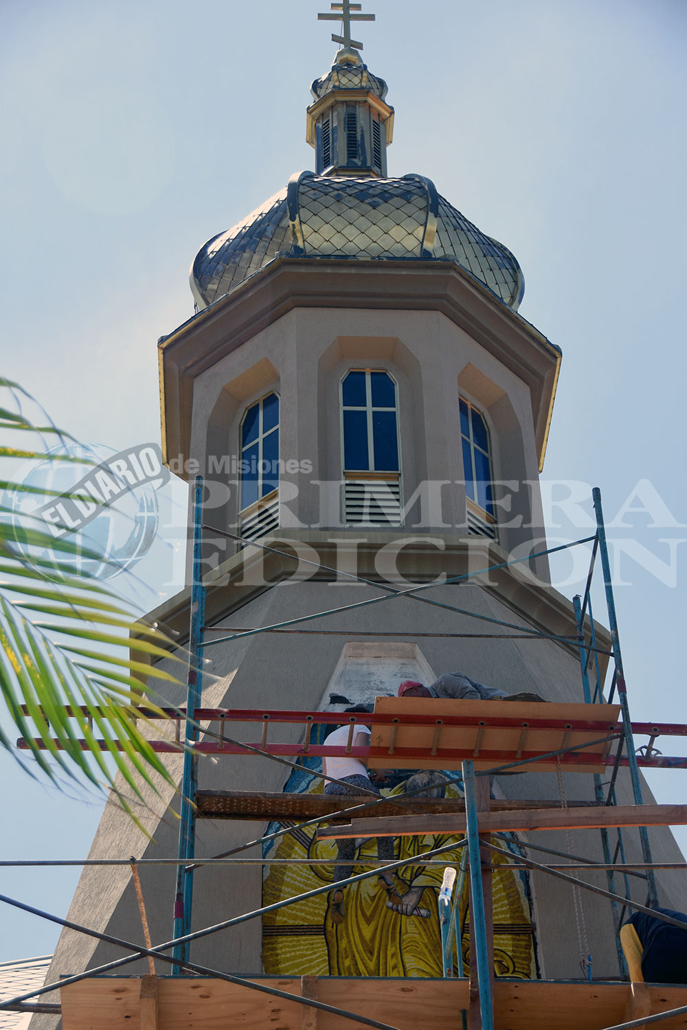 “Elegimos la imagen de un Cristo Transfigurado, que presenta el misterio de la humanidad y de la divinidad de Cristo, al mismo tiempo. Él se manifiesta así frente a sus discípulos: perfectamente Dios y perfectamente Hombre. Estas realidades de Cristo son las que se quieren transmitir también como comunidad. Que sea un espacio que cobije la divinidad y que reciba a toda la comunidad de Posadas porque la parroquia está abierta a todos”, manifestó Playuk, mientras ajustaba los detalles para la colocación. Fue así que solicitaron a la iconógrafa Lucía Makarchuk (responsable de la decoración interna de la parroquia) que escribiera esta imagen en una tabla, que lo transformara en ícono, y a partir de ese cuadro -que fue consagrado en Buenos Aires-, comenzó la meticulosa tarea de la prestigiosa mosaiquista Lorena Costantini.