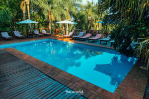 En el house se sirve el desayuno y el almuerzo. La cena generalmente en la galería con vista a la piscina para disfrutar del increíble cielo misionero. La comida es sana y natural, con vegetación de una huerta propia, aves de corral, vacas y cerdos. En cuanto la pesca, está ahí, al alcance.