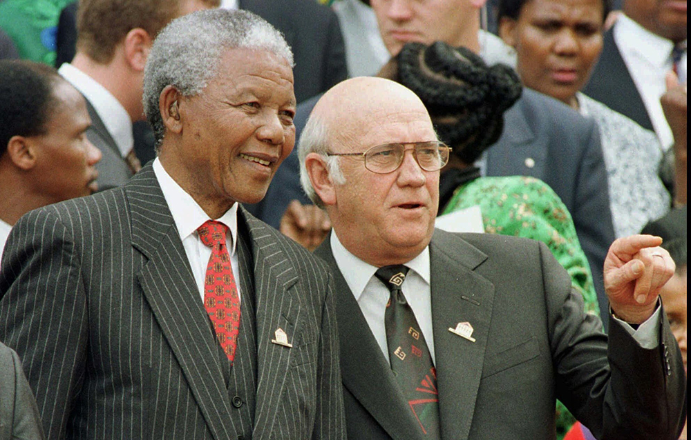 De Klerk propició el fin del sistema racista poco después de haber asumido el mando, al suceder en 1989 al presidente Pieter Willem Botha, debilitado por un infarto. El 2 de febrero de 1990 anunció el inminente término de la dominación blanca en Sudáfrica al señalar, en el Parlamento, que había llegado “la hora de las negociaciones”, y ordenando la libertad incondicional de Mandela, que estuvo 27 años preso.