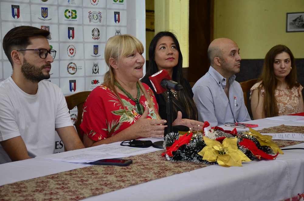 De la presentación participaron la presidente de la Federación de Colectividades Marta Wieremiey de Motta, Alejandro Cieplinski, Javier Cuevas, Noni Rodríguez, Cristian Leandro Szydlowski, Cristian López y el subsecretario de Turismo Tony Lindstrom, brindando detalles sobre el evento.