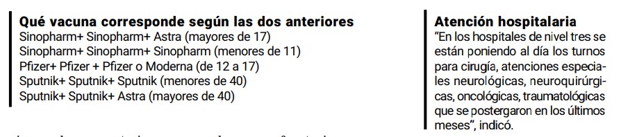 En tanto, contó que desde este lunes 8 comenzaron a aplicar la tercera dosis al personal de salud, “a todo el personal esencial, como las fuerzas federales, en los hogares de ancianos, alojamientos con aglomeración de personas. Estamos con operativos extramuros, fuera de los vacunatorios, con todas las dosis. Tenemos stock de Sinopharm, Astrazeneca y Pfizer”.