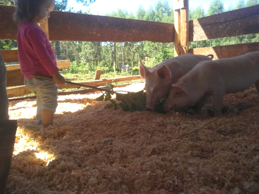 La chacra produce maíz, mandioca, verduras, algo de frutas, y si bien el stock de animales de granja (gallinas y cerdos ) y algunas vacas gracias son más bien para consumo personal, se usan los desechos para producir biofertilizantes, compost y preparados agroecológicos para abonar el suelo.
