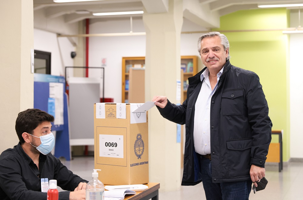 El Presidente votó a las 9:30 en la mesa 69 de la sede de la Universidad Católica Argentina (UCA), en el barrio porteño de Puerto Madero, tal como lo hizo en las elecciones Primarias, Abiertas, Simultáneas y Obligatorias (PASO) del pasado 12 de septiembre.