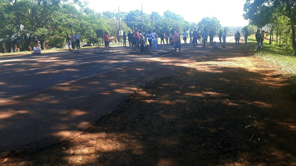 Un grupo de aproximadamente 100 personas corta desde esta mañana la ruta nacional 12, a la altura del kilómetro 1.591, frente a la Iglesia Czhetsowa del barrio Industrial de Wanda.
