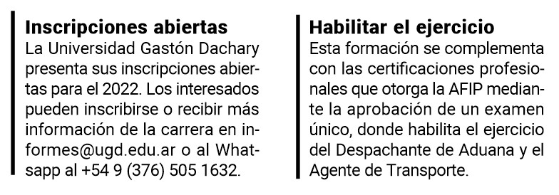 La frontera, la Aduana y el puerto presentan alta demanda de profesionales especializados en aspectos internacionales para el posicionamiento de productos en el mercado. La Licenciatura en Comercio Internacional es una oferta académica de la UGD, única en Misiones, que presenta una formación integral con orientación al servicio aduanero, que en un corto plazo permite realizar trámites, registros y un seguimiento de las importaciones y exportaciones.